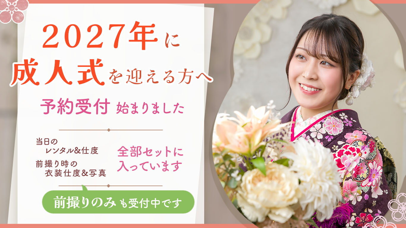 2027年(令和9年)に成人式を迎えられる皆さまの衣装レンタルと撮影のご予約受付を開始いたしました。